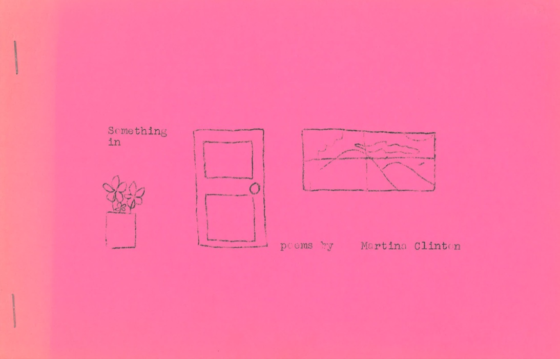 The fourth issue (pdf here) is Something in by Martina Clinton, who Nichol describes on the back-cover as “one of the foremost radicals in the early stages of the Vancouver poetry Renaissance.”