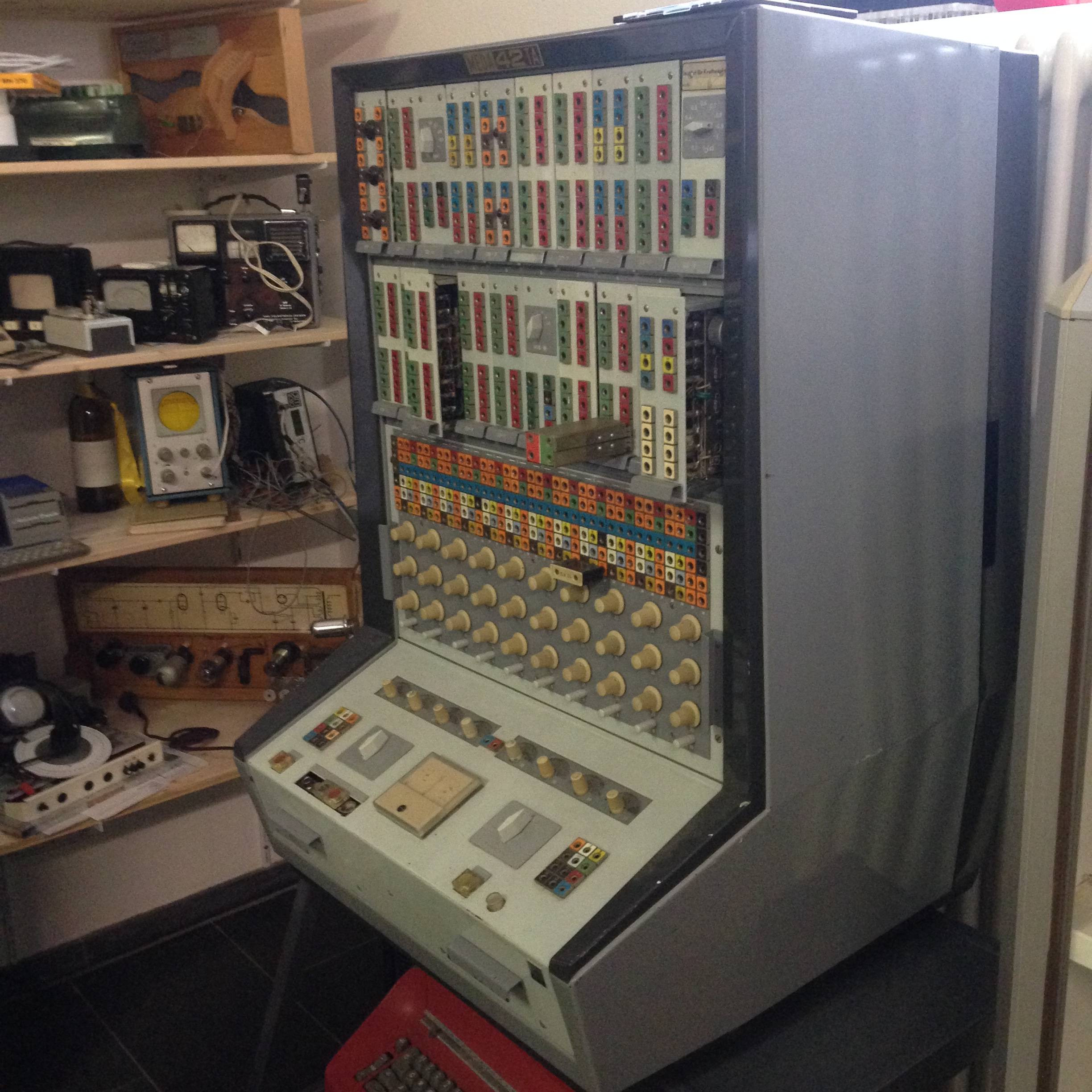 By contrast, both the Signal Lab and the Fundus structure their space by having machines stacked on shelves around the perimeter of the room with empty tables situated in the middle of the room such that visitors can remove machines from the shelves and use the tables for hands-on experiments. This is, I think, a small but fundamental difference in our labs as the infrastructure of these two Berlin labs is such that there is a firmer, even unapologetic rejection of the aura of the museum and an emphasis on serious research. As Stefan wrote to me in the same email: “Yes, it’s a question of space and the numbers of items stored in the collections. But the ‘Fundus’ also wants to be a fund (like that in theaters) where the students and researchers take items from the shelf to use in their projects. The fundus itself is not an exhibition. The Signal Lab has some workstation desks but most of the computers are stored in shelfs. The benefit is that the users have to build the systems with its peripherals for themselfs to use them (which – I think – is a form of technological praxis that has to be ‘preserved’ as well).”